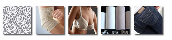- Due to high elongation, spandex can't be knitted independently. It needs to be mixed with other materials on a very small ratio. 2-5% content will be enough to make fabrics close-fitting, comfortable and overhang. It is an essential raw material for making sportswear, swimwear, women underwear, socks, narrow fabrics, top grade suits, industrial textile applications such as medical & hygiene articles, automotive interiors, etc.