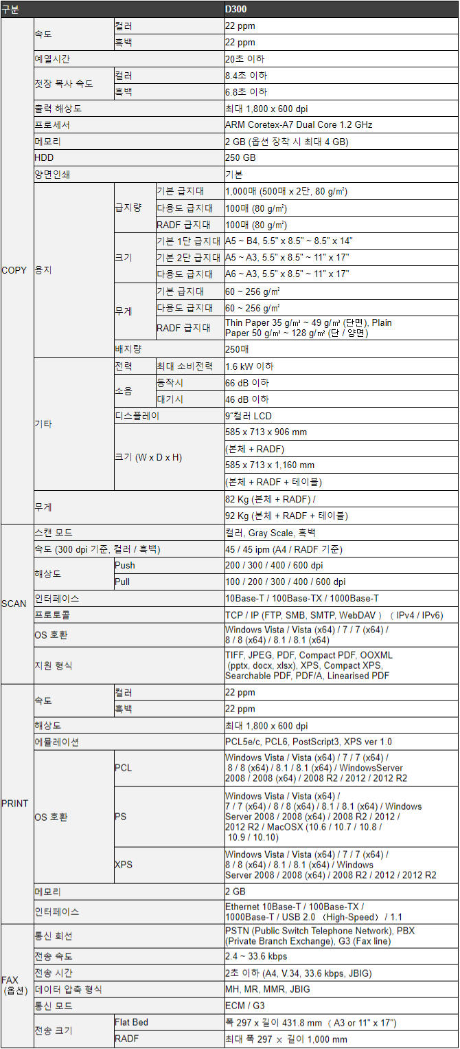 - 신도리코 A3 컬러 복합기 D300