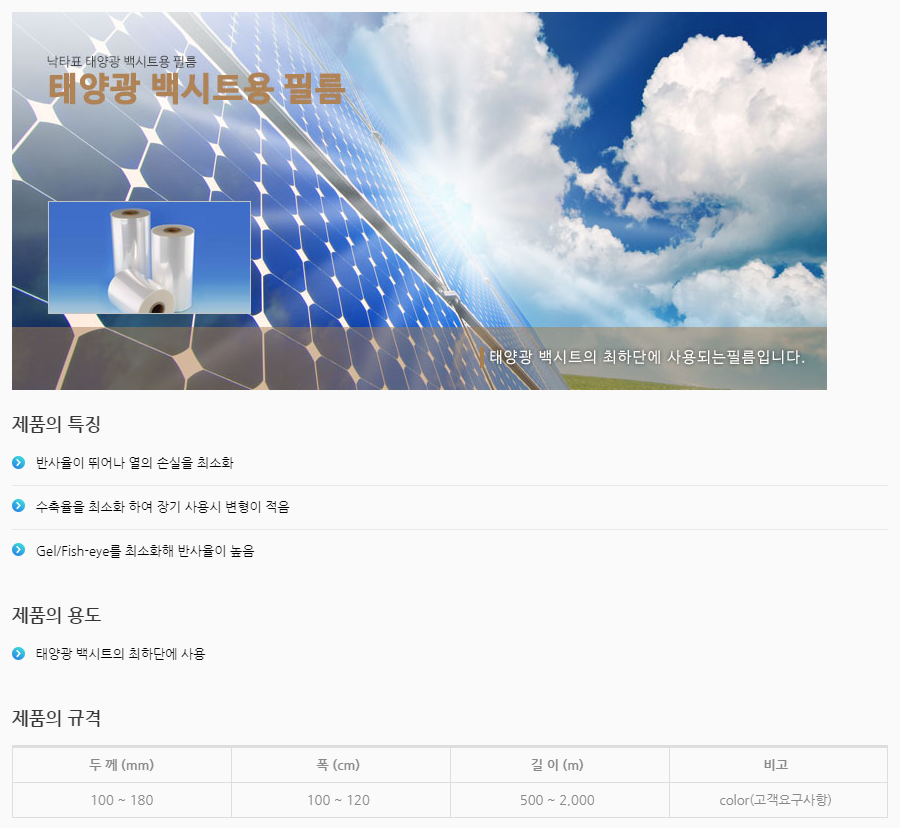 태양광 백시트용 필름