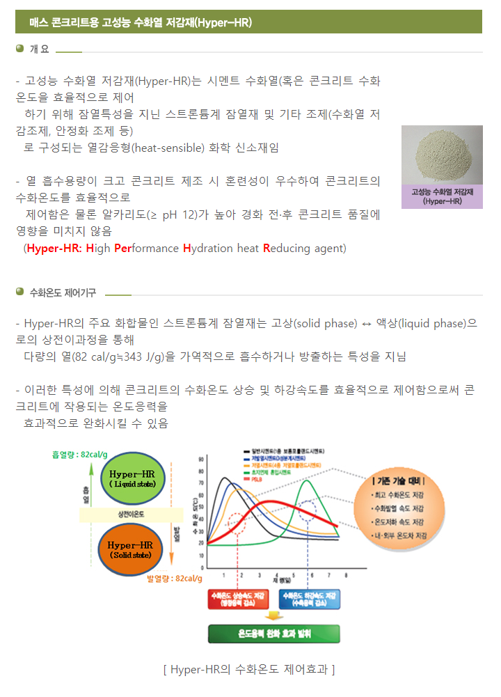 매스 콘크리트용 고성능 수화열 저감재(Hyper-HR)