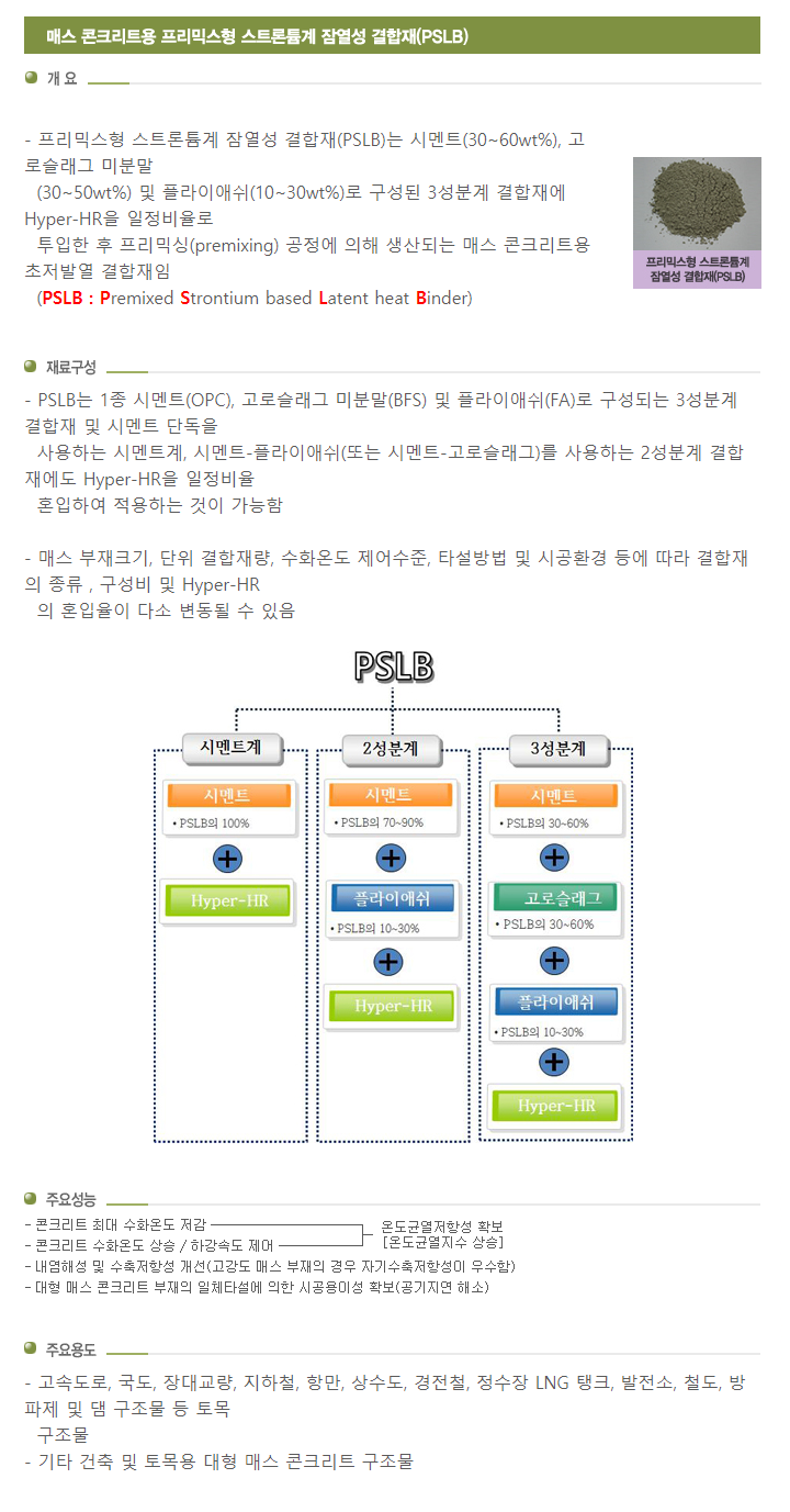 매스 콘크리트용 프리믹스형 스트론튬계 잠열성 결합재(PSLB)