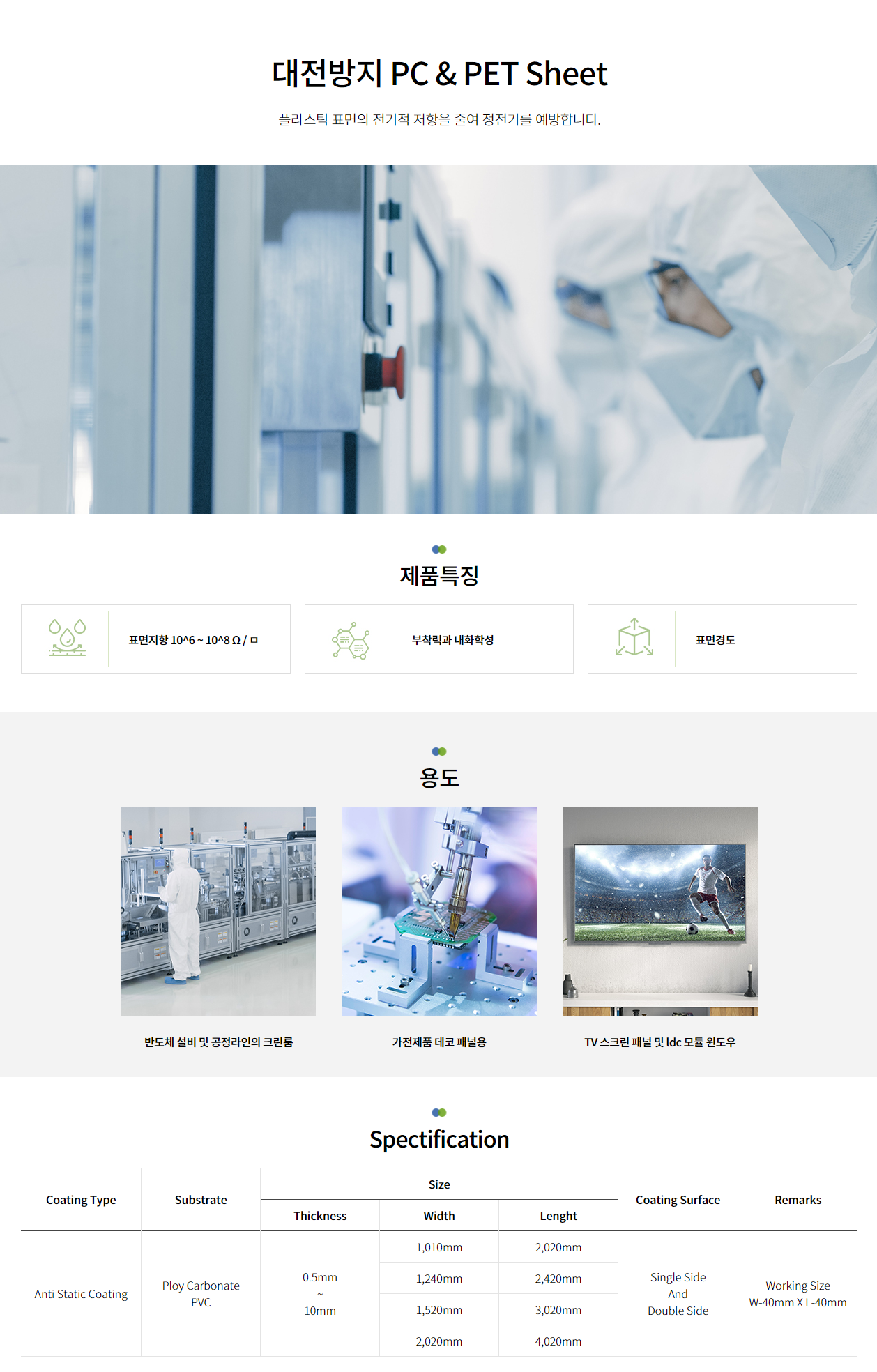 대전방지 PC, PET 시트