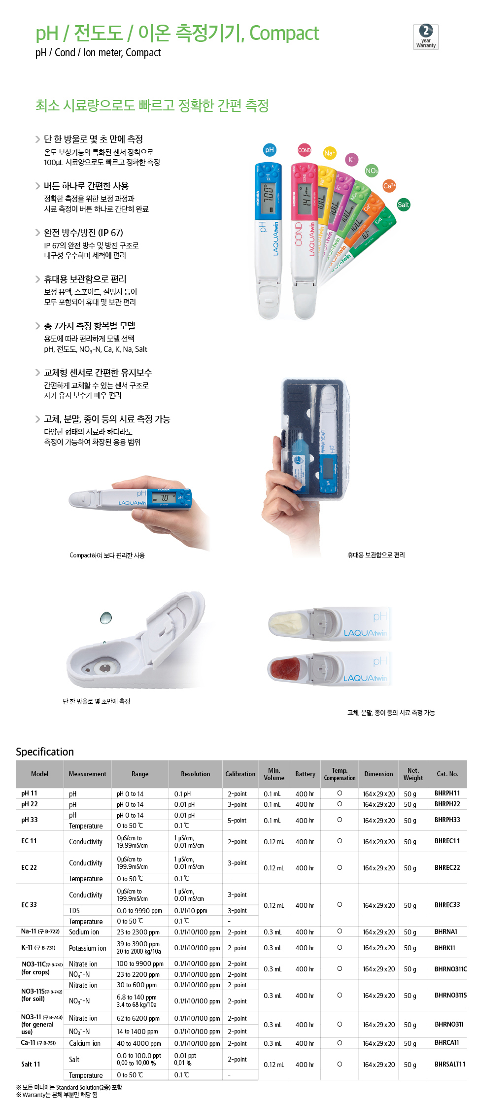 pH, 전도도, 이온 소형 측정기기