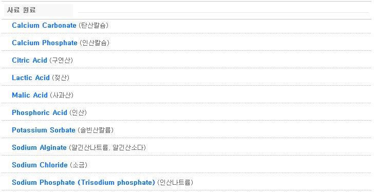 사료 원료(탄산칼슘 외 10종)